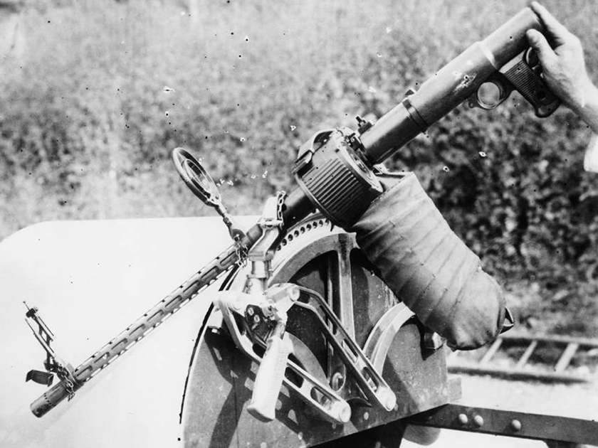 Историческая справка: разработанная в 1934 году, компанией Рейнметалл (Rheinmetall) калибра 7,92 мм пулемет MG 15, предназначался для установки в поворотных огневых точках, боеприпасы находились в магазинах барабанного типа. Начальная скорость снаряда в них составляла 765 м/с. Вес составлял 8,1 кг. Данный пулемет также широко применялся и в других родах войск, помимо Люфтваффе, в основном как средство ПВО.