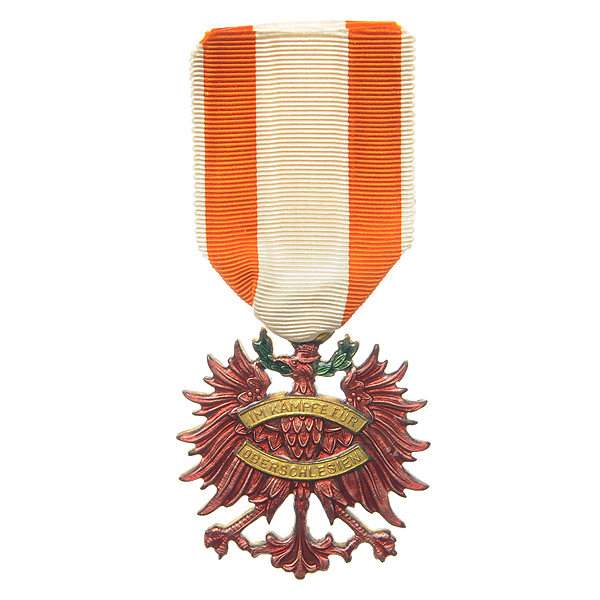 Наградной знак тирольских волонтеров официально именовался "Тирольским орлом с мечами Тирольского Штурмового взвода" (нем.: Tiroler Adler mit Schwertern des Sturmzuges Tirol). Знак представлял собой геральдическое изображение смотрящего влево коронованного одноглавого орла (герба австрийской коронной земли, или провинции, Тироль), изготовленное из желтого металла и покрытое карминно-красной эмалью. Под голову орла был подложен покрытый зеленой эмалью лавровый венок в форме полумесяца (рогами вверх). На груди орла располагались 2 горизонтльные изогнутые позолоченные ленты, образующие как бы овал. На верхней ленте была расположена выполненная латинскими литерами надпись "IM KAMPFЕ FUER" ("В БОРЬБЕ ЗА"), на нижней - "OBERSCHLESIEN" ("ВЕРХНЮЮ СИЛЕЗИЮ"). Над головой орла, увенчанной короной, было закреплено круглое металлическое "ушко", в которое продевалась зелено-бело-зеленая лента. К ленте были прикреплены 2 позолоченных скрещенных обнаженных меча из желтого металла.